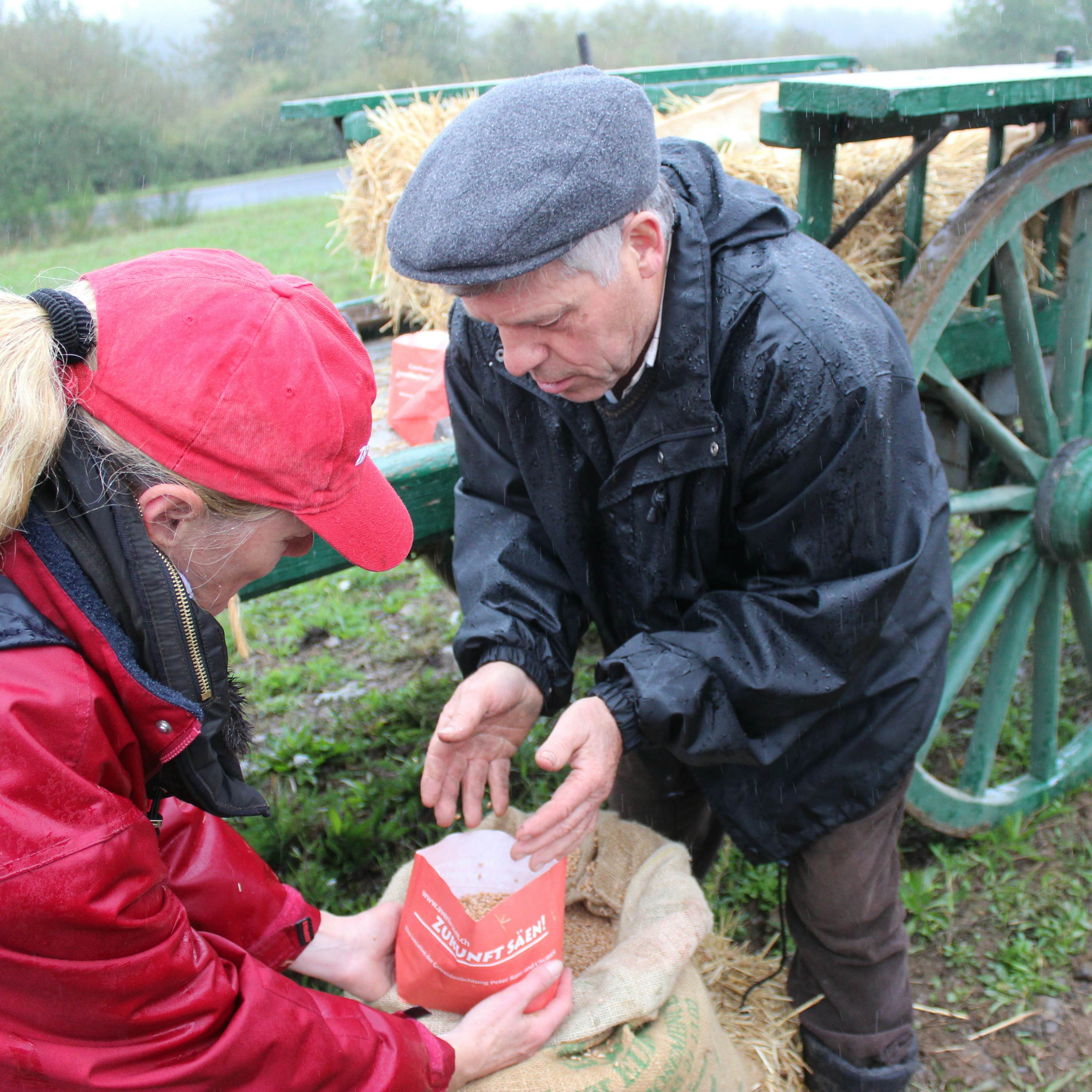 Usually, we are sowing a field of one of the Bio-Lëtzebuerg members per hand along with motivated sowers. Last year, the action took place at the organic farm “An Néckels” belonging to the family Hamen in Drauffelt.